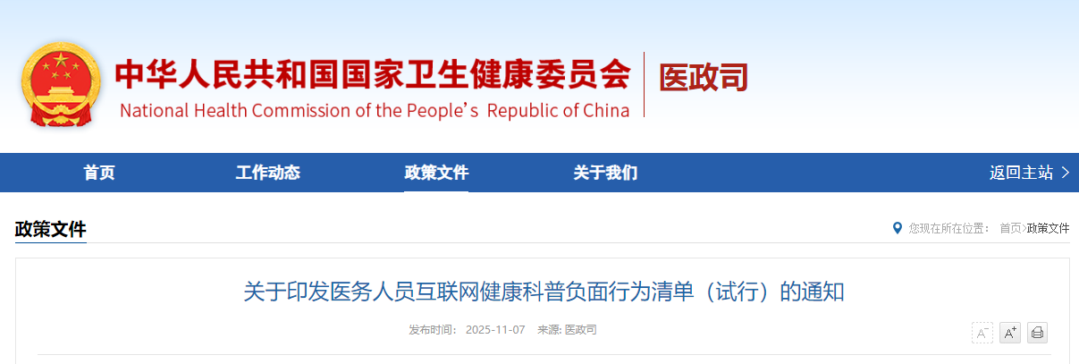 近年来,公众对健康知识的需求日益增强,互联网已成为公众获取健康科普信息的重要途径,但个别医务人员以健康科普名义“带货”“打广告”、违规泄露医疗信息,违背了健康科普初衷、损害了医疗行业形象。为进一步规范医务人员互联网健康科普行为,依据《中华人民共和国基本医疗卫生与健康促进法》《中华人民共和国医师法》《中华人民共和国科学技术普及法》《中华人民共和国中医药法》《医疗机构工作人员廉洁从业九项准则》《互联网用户公众账号信息服务管理规定》等法律法规规定,国家卫生健康委、国家中医药局、国家疾控局组织制定了《医务人员互联网健康科普负面行为清单(试行)》。现印发给你们,请认真贯彻执行,结合实际开展工作。同时,提出以下工作要求。