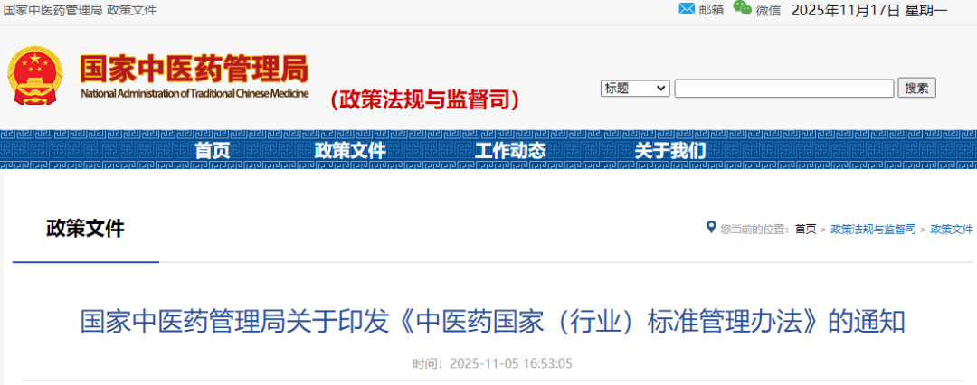 为进一步加强中医药标准化规范管理,引领和促进中医药标准高质量发展,根据《中华人民共和国标准化法》《中华人民共和国中医药法》,我局组织对《中医药标准管理办法》进行了修订,形成了《中医药国家(行业)标准管理办法》,已经2025年第23次局长会议审议通过。现印发给你们,请遵照执行。