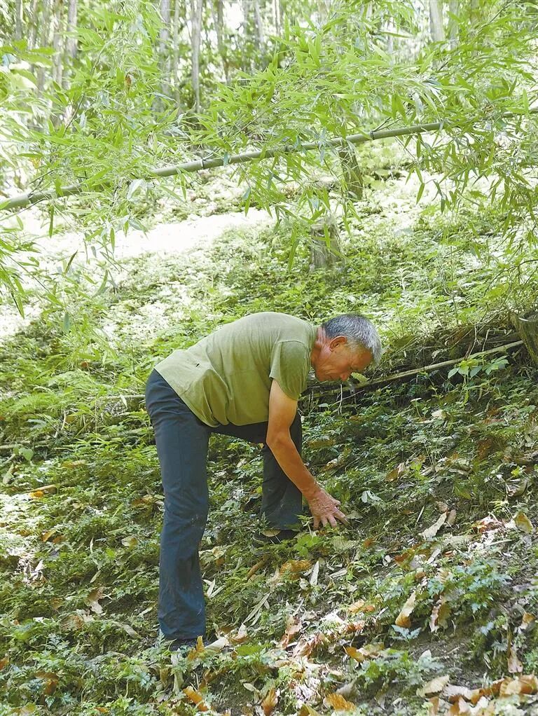 7月31日,镇坪县华坪镇渝龙村的山坡上,成片的黄连郁郁葱葱,长势正旺。村民王云生和妻子正在30余亩的黄连地里除草。