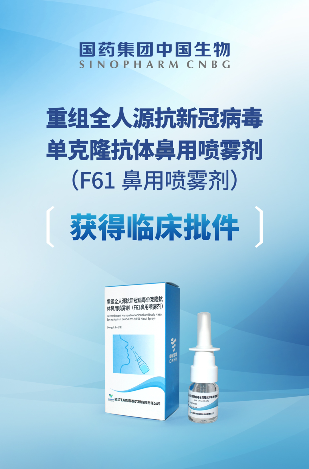 抗新冠单抗F61鼻用喷雾剂!央企国药集团中国生物研发预防用新药获批临床