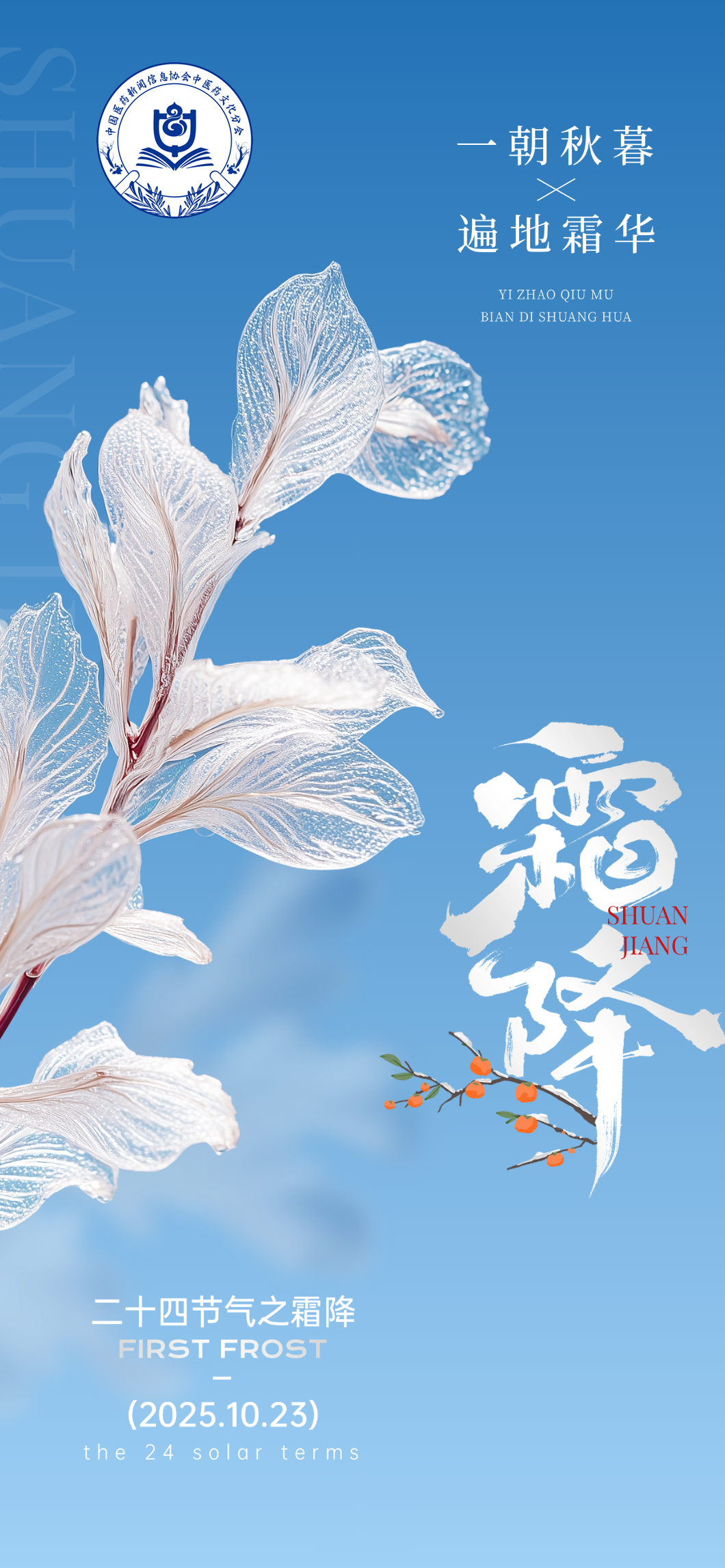 霜降是二十四节气中的第 18 个节气,也是秋季的最后一个节气,通常在每年公历 10 月 23—24 日交节,当太阳到达黄经 210° 时即为霜降。它的到来,意味着气温持续下降,昼夜温差进一步拉大,冷空气活动愈发频繁,万物开始从繁茂走向萧瑟,预示着冬季即将来临。